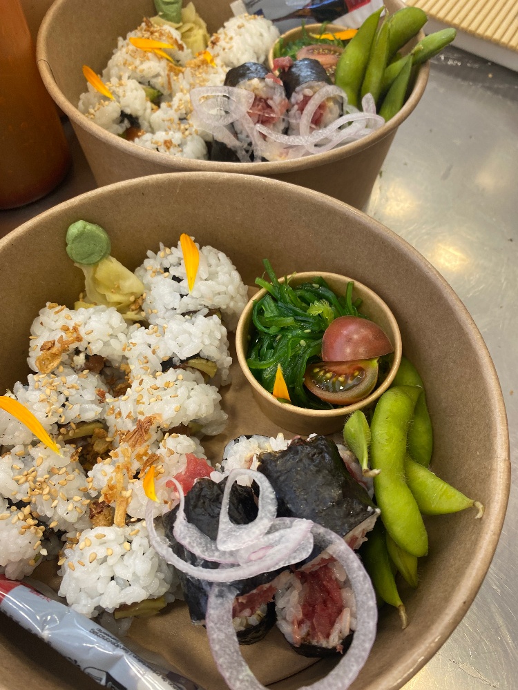 (crevettes frit ,concombre fromage frais ,thon ,saumon) 12€